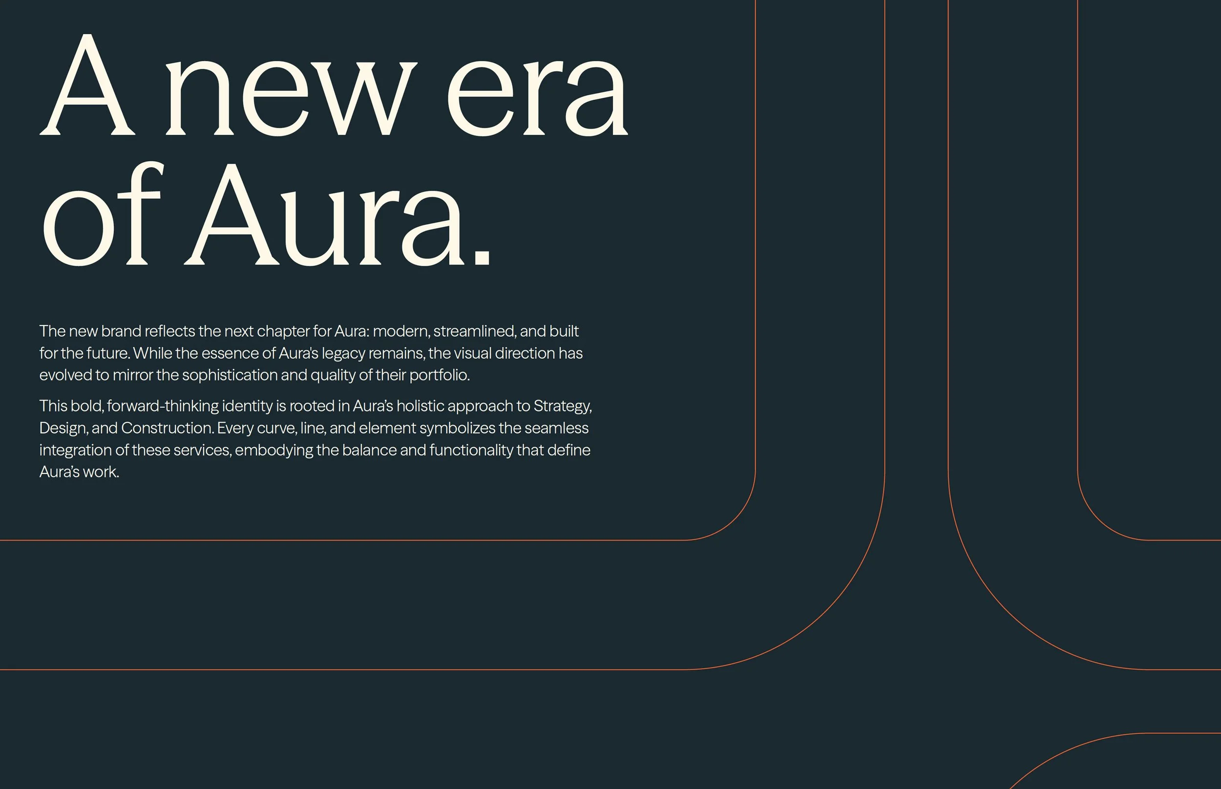 Aura is a leading Canadian interior design firm specializing in full-service design-build office transformations. As they expanded across Canada, they needed a rebrand that reflected the caliber of their work while clearly communicating the full scope of their services: strategy, design, and construction. Their internal team also sought a more flexible and robust brand system, having outgrown their limited palette and basic visual toolkit.