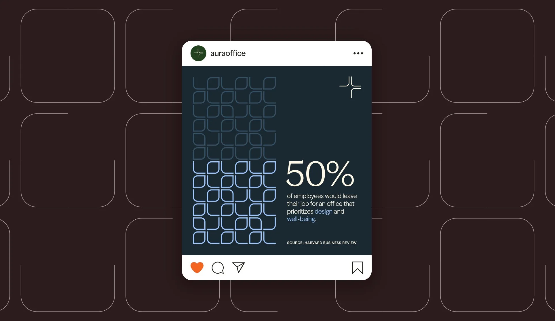 The logo icon serves as the foundation for a flexible system of shapes and patterns used throughout the brand. These graphic elements adapt easily to different contexts, acting as bold statements, subtle textures, or tools for visualizing data. Each element reinforces Aura’s identity and its focus on connection and clarity.