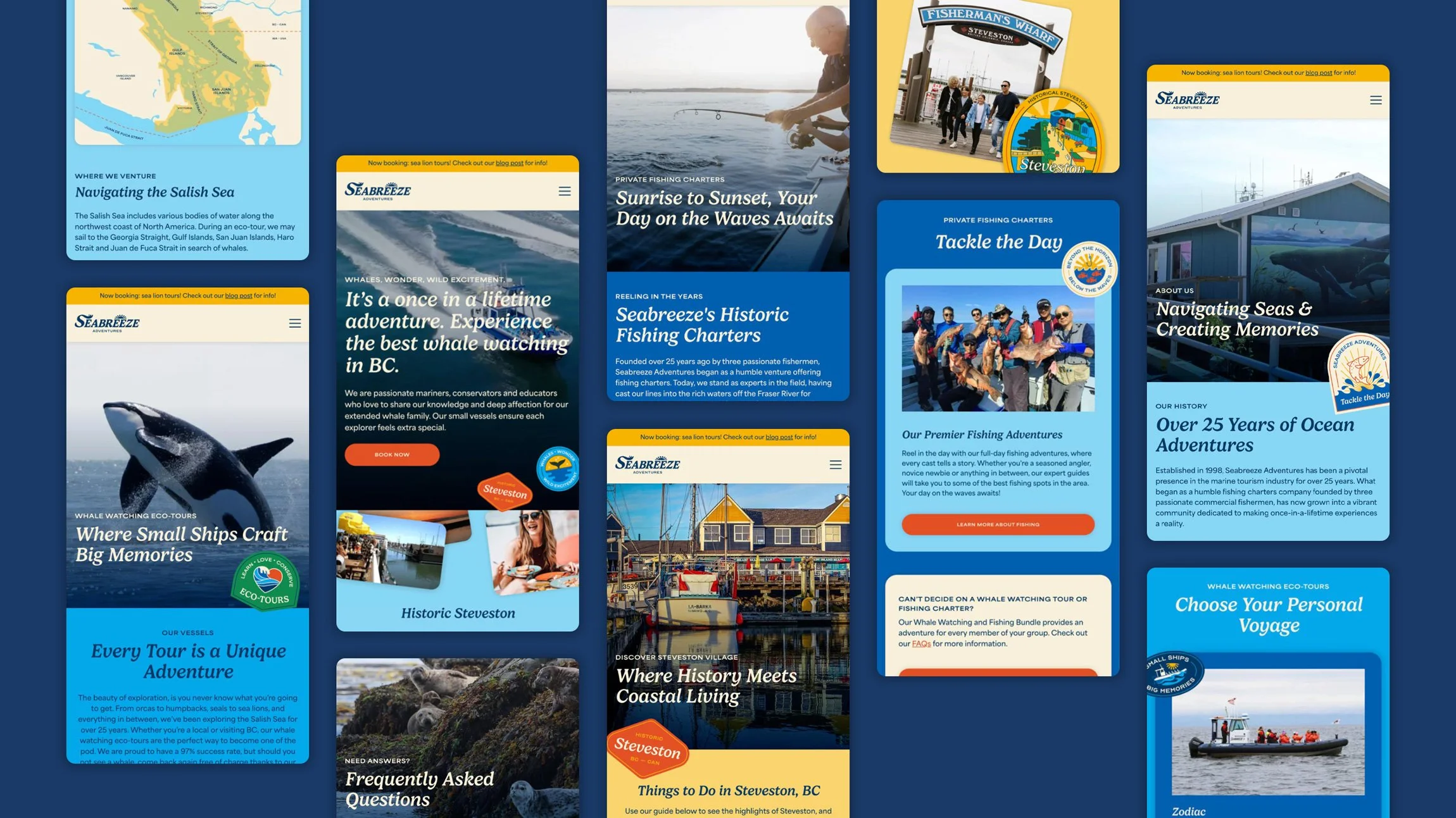 Seabreeze Adventures is a whale watching and fishing eco-tour company located in Steveston, BC, who have been offering exciting marine experiences since 1998. Facing challenges related to their location, smaller vessels, and overall competitive landscape, the company, under new ownership, sought to revamp their brand and better connect with their audience.