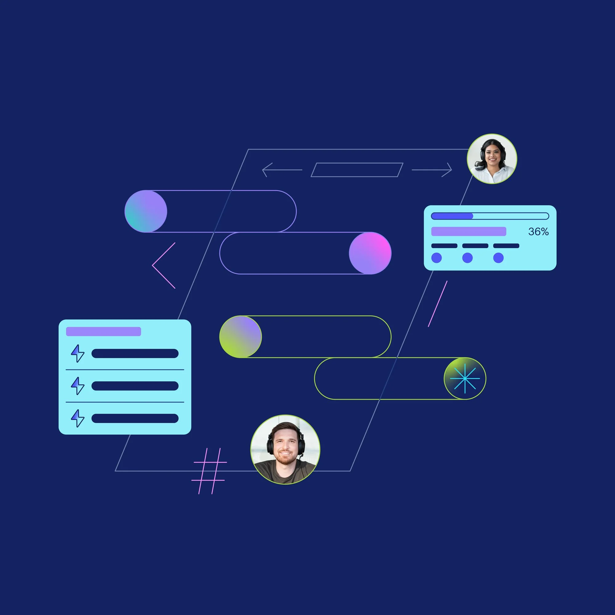 Custom illustrations bring a human quality to the brand, blending real images of employees and users with graphical elements. Leveraging Zenhub’s expansive colour palette with coding-inspired graphics, I created illustrations to help unify the brand and bring a unique vibrancy to the redesigned website.