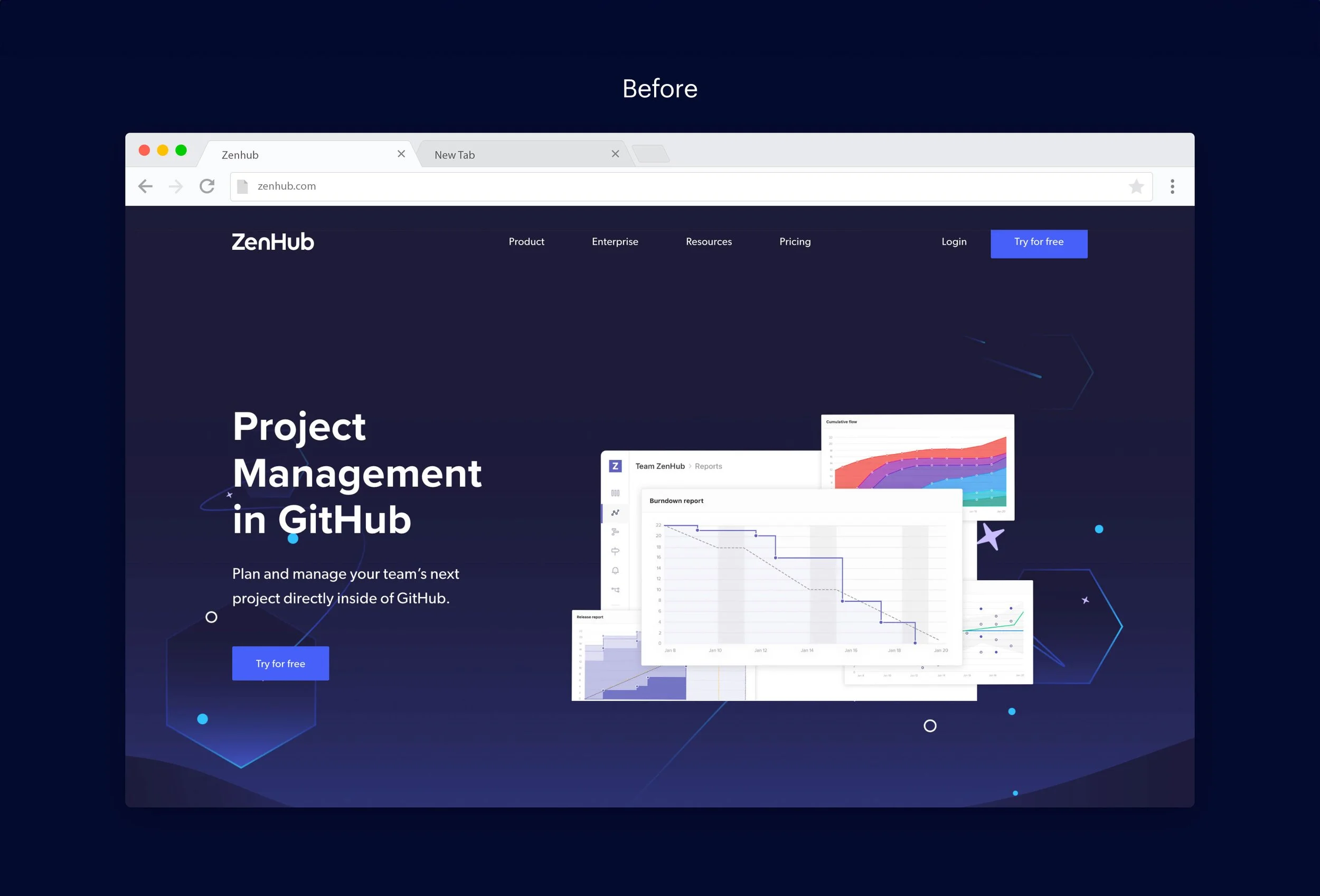 Zenhub, an innovative software development productivity tool, sought a website redesign to better align with their evolving product and growing brand. They needed a more cohesive visual identity that would resonate with their audience of developers and project managers while standing out in a competitive market.